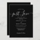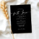 Um convite de casamento ousado, mas simples, com um texto elegante de roteiro branco sobre fundo preto. Essa design minimalista fala sobre a beleza da simplicidade e do amor, com um toque moderno de elegância. Perfeito para casais que buscam um na moda, um olhar moderno para seu dia especial. Personalize o convite para refletir seus detalhes únicos de casamento. Envie-me uma mensagem se precisar de ajuda para personalizar este design.