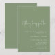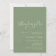 Um convite à festa de noivado moderno com a citação "nada de rico, apenas amor" em letra branca, escrita à mão, sobre um fundo verde sábio.