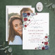 Crie o convite perfeito para um casamento casual, ou celebração de recepção após a fuga, com este moderno e trendy floral em aquarela azul-acinzentado e burgundy, apresentando tipografia de letra manuscrita. O verso do cartão apresenta sua foto de noivado favorita. Entre em contato com o designer para produtos correspondentes. Muito obrigada por apoiar nosso pequeno negócio, realmente apreciamos!