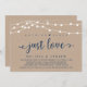 Lindas luzes de corda rústicas modernas e lindas, fonte de letra cursiva azul-marinho em fundo de papel Kraft, anúncio de casamento íntimo, cartão de convite (nada sofisticado, apenas amor). Isto é perfeito para a recepção do seu casamento e festa de celebração pós-casamento. Adicione seus detalhes na fonte / letra correspondente.