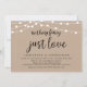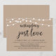 cartão de conviteconvite pós casamentocelebração após o casamentoanúncio de casamento secretokraft marromluzes de corda rústicasfontes pretasnada sofisticado apenas amor