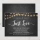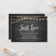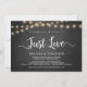 Lindo Nada sofisticado, apenas amor, Anúncio de casamento / cartão de convite, em quadro negro rústico de fazenda, design de luzes de corda. Isso é perfeito para o seu casamento e festa de celebração pós-casamento. Adicione seus detalhes na fonte / letra correspondente.