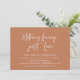 Nada sofisticado, apenas amor, cartão de convite para anúncio e celebração de casamento clandestino, em belo script casual, tema marrom ferrugem de cobre. Isso é perfeito para o seu casamento e festa de celebração pós-casamento.