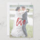 Crie o convite perfeito para um casamento casual, ou uma celebração de recepção após uma fuga, com este design moderno e moderno de tipografia vermelha, apresentando tipografia de letra manuscrita sobre uma camada de vellum falso, e sua foto favorita. O verso do convite apresenta um muro de grafite de amor vermelho. Entre em contato com o designer para produtos correspondentes. NOTA DO CRIADOR: A "sobreposição de vellum" neste produto é um efeito digital." Copyright Anastasia Surridge para Anastasia Designs, todos os direitos reservados.