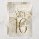 Celebre qualquer evento especial em estilo com este modelo de convite único, que apresenta fraldas delicadas em tons de ouro num fundo de champanhe cintilante. O "Doce Dezesseis", que se apaga aos olhos, num efeito brilhante de brilho dourado, é facultativo e pode ser eliminado para utilizar o modelo para outras ocasiões. Use o modelo fornecido para personalizar os detalhes do evento. Procure ID652 para ver outros produtos e opções de cores para este design.
