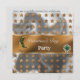 Um convite elegante à folha de cor laranja e prata que inclui uma lua verde-Khaki com um charme de pérolas douradas, colares de corações esmeraldas douradas e estrelas brilhantes de cor laranja escura.