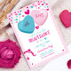 Adorável tema do Namorados Sweetheart gênero revela convites com ilustrações amorosas azuis e cor-de-rosa com texto "Ele ou ela". Personalize o texto para a sua revelação de gênero. Este design Sweetheart também está disponível para download instantâneo se você quiser um convite digital para compartilhar.