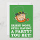 Irlandês? Não. Ainda Festejando? Você Aposta! Não precisa ser irlandês para se divertir no Dia de São Patrício. Um convite excelente para enviar aos seus convidados! Diga-lhes que você não é irlandês, mas você ainda está tendo uma festa! Um convite verde com um duende de desenho animado.