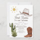 Este convite de festas "este não é o meu primeiro rodeio", rapaz da vaqueira, segundo temático/segundo aniversário, apresenta um fundo branco com um chapéu de vaqueiro, bota de vaqueiro, cacto e o sol. O verso apresenta um fundo branco com padrões de vaca. Personalize para suas necessidades. Você pode encontrar produtos correspondentes na minha loja.