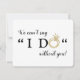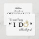 Cartão personalizado de celebrante de casamento com um fundo branco tradicional que pode ser alterado para qualquer cor com o texto "não podemos dizer eu aceito sem você" e um lindo anel de noivado dourado como 'o' e um modelo de você será nosso celebrante. Também pode funcionar para - você será nossa dama de honra ou padrinho!
