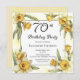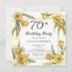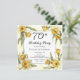 Desenho floral de narcisos amarelos elegantes "Festa de Aniversário de 70 Anos" com uma moldura quadrada floral de narcisos em torno de uma moldura branca e verde em um fundo amarelo e branco desgastado.