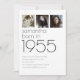 Nascer moderno em 1955, 3 Fotos, Festa de aniversário Convidado. Simples elegância. Personalize facilmente o texto de acordo com as suas próprias necessidades e substitua as imagens de exemplo por 3 das suas próprias fotos de diferentes idades.
