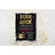 Nascer para Rock Rockstar Rock Star Drumset Drum conjunto de Chás de fraldas Metálicos com Glitter Metálico Convite para