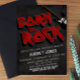 Celebrar o chá de fraldas no estilo Rock and Roll, este Convite foi inspirado pela Rock, a inscrição no título e o fundo são projetados com estilo de angústia para oferecer as vibrações clássicas do Rock and Roll