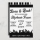 Nascer para Rock! Este convite monocromático é perfeito para o seu chá de fraldas temático rock'n'roll.