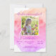 Cartões de convite de aniversário de design de aquarelas modernas e adoráveis para uma menina de 4 anos (ou qualquer ano - apenas edite!). Cor rosa, pêssego, roxo, lavanda, branco violeta. Personalize adicionando sua imagem FOTO., imagem. A parte traseira do cartão tem a opção de adicionar o nome com um grande número de aniversário. Este convite personalizado é perfeito para qualquer tema de aniversário e idade!