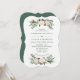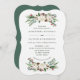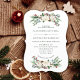 Esses convites de casamento elegantes apresentam flores de aquarela rústicas com pinecones, ramos, bagas, folhas e rosas brancas.