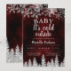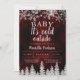 Bebê, está frio lá fora! Celebre a chegada do seu bebê com este brilho de glitter prata neve e flocos de neve, com uma floresta de pinheiros prateados brilhantes em um fundo elegante de aquarela vermelha burgundy de inverno.