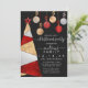 Este elegante e chique convite de festas de Natal é perfeito para colocar a vibração festiva para o seu evento sazonal. Apresenta uma árvore geométrica de folhas vermelha brilhante, dourada e cintilante, moderna e glamourosa, impressa cintilante, com cobertura estelar e ornamentos pendurados sobre um simples fundo preto. O verso retrata um padrão de brilho vermelho cintilante. É bonito e na moda com elegância luxuosa. ***NOTA DE DESIGN IMPORTANTE: Para qualquer solicitação de design personalizada, como solicitações de correspondência de produtos, alterações de cor, mudanças de posicionamento ou qualquer outra solicitação de alteração, clique no botão "CONTACT" ou envie um e-mail ao designer diretamente em lafemme.art@gmail.com. Você pode até enviar um e-mail para ela solicitando um design completamente personalizado e novo.