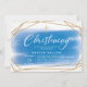 O convite de um rapaz moderno e elegante, Christening, apresenta um roteiro manuscrito em letras brancas, uma imagem de ouro, uma cruz de ouro sobre fundo azul de aquarela. Personalize com detalhes em letras maiúsculas modernas.