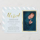 Meu Clássico Azul Dourado Bênção, Natal é a maneira perfeita de convidar amigos e família para uma festa! Esta carta está com quadros azuis. A tipografia elegante dá a esta design uma aparência muito clássica, perfeita para uma celebração batismo/batizante. Personalize sua cópia selecionando personalizar no lado esquerdo da lista de cartões.
