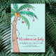 Natal Em Julho, Celebração, Convite de festas De Palmeira. Convide a família e amigos para a sua festa de Natal Themed Summer com estes divertidos convites festivos. Eles apresentam uma aquarela de uma palmeira decorada. Personalize esses convites de festas com seus detalhes, altere a palavra Celebração para Partido ou CHURRASCO, se desejar. Todo o texto é personalizável. Porque nós criamos nosso próprio trabalho de arte você não encontrará essa imagem exata de outros designers. Original Watercolor © Michele Davies.