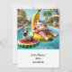 "Adicione uma reviravolta divertida às suas festividades de Natal com este cartão de convite de festas de Natal divertido! Apresentando Papais noeis e um gato flutuando em uma piscina, este cartão único reúne o melhor de alegria de Natal e vibrações de verão. Perfeito para o seu Natal em julho ou qualquer festa de piscina de feriado."