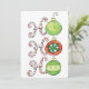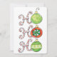 Adorável ilustração vintage Feliz Natal clipart de desenho animado design de texto de feriado. As palavras "Ho Ho Ho" com as letras escritas em bastões de doces listrados de vermelho e branco e enfeites de Natal de vidro redondos.