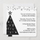 Convite de festas de Natal preto e branco decorado com crânios, estrelas e flocos de neve.