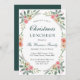 Um convite elegante para o almoço de Natal, com buquês de aquarela de flores cor rosa e corais em verde-inverno, um bonito roteiro verde-escuro e uma simples tipografia moderna. Você pode personalizar o tipo de evento (almoço de férias, brunch, festa de chá, festa de aniversário, chá de panela etc.).