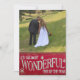 Um antigo sinal vermelho e branco com decoração em flocos de neve declara que é a época mais maravilhosa do ano neste Cartões de foto de Natal. Sua própria fotografia leva o palco central no topo. A parte traseira do cartão tem três campos para seu texto personalizado e sua mensagem pessoal.