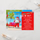 Natal No Convite de aniversário de julho apresenta a cena da praia azul, Papai Noel, presentes, luzes de cordas e modelo de texto de convite.Um design perfeito para a festa de aniversário de verão.Clique no botão personalizar para personalizá-lo com seu próprio texto.Por favor visite minha loja " amor" para outros designs ou similares.