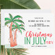 Vamos comemora o Natal em julho com uma festa! Convide familiares e amigos para a sua festa de Natal em julho com este divertido convite com palmeiras de aquarelas decoradas com luzes e bolhas. Personalize esses convites com seus detalhes e aproveite a diversão! À medida que criamos a nossa trabalho de arte, não encontraremos esta imagem exata de outros designers. Original Watercolor © Michele Davies.