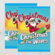 Traga vibrações tropicais para a temporada com este design divertido do Papai Noel andando de prancha sob um pôr do sol. Uma obra de arte divertida e única perfeita para decoração de Natal, presentes e roupas.