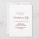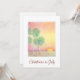 Natal no convite de festas de julho com tipografia de guião e design de praia tropical com palmeiras ao pôr do sol. Com a inscrição personalizável vermelha, você pode adicionar suas próprias informações. Uma forma festiva de adicionar um toque de verão à sua celebração de feriado.