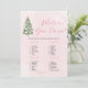A Árvore de Natal de Arcos Rosa O que há no seu Jogo de Chá de fraldas é uma atividade festiva e interativa para a sua comemoração temática do feriado. Apresentando um charmoso design com arcos cor-de-rosa, árvores de Natal e um fundo cor-de-rosa nevado, os hóspedes irão procurar nas suas bolsas itens da lista para ganhar pontos. Perfeito para o chá de inverno de uma menina, este jogo adiciona diversão, risos e alegria festiva ao seu evento, criando momentos memoráveis para todos. 🎀 🎄