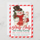 Este convite de festas natal vintage do século médio apresenta um boneco de neve alegre no chapéu, cachecol e carregando uma cana doce com as palavras "Holly Jolly e pronta para festejar" com uma brilhante borda vermelha e branca de cana doce e de respaldo. Personalize adicionando os detalhes pessoais do seu partido.