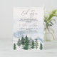 Selvagem A Aventura Começa o Convite ao Chá de fraldas Cena de Pinheiros Atmosféricos de inverno A aventura inicia o convite ao chá de fraldas. Esta design também mostra um "oh boy" indo, um coração e um padrão listrado azul no verso. Excelente para o chá de fraldas de inverno de um menino.