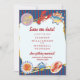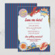 Announce your upcoming nuptials with this charming "Save Our Date" card, perfect for a coastal wedding. The design features a vibrant blue and red stripe pattern, reminiscent of a seaside boardwalk, adorned with delightful illustrations of fresh seafood like lobsters, oysters, and crabs. It sets a fun and festive tone for your special announcement, letting your guests know that your beach wedding in the Florida Keys is on the horizon. Let this unique design capture the essence of your celebration and build excitement for the invitation to follow.