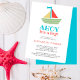 O chá de fraldas "Ahoy it's a Boy", com estilo retrorativo, de um navio náutico colorido de náutica, chamado "Ahoy it's a Boy", em azul-lacre vibrante e vermelho.