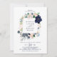 Este convite de casamento de quadro floral náutico moderno é perfeito para um casamento de cruzeiro ou praia. O design branco apresenta flores cor-de-água, cor-de-rosa-claro e marinho, cor-de-rosa-claro, com sotaques dourados, dando-lhe uma vibração da praia.