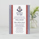 O vermelho e os azuis marinhos ancoram convites do casamento com um tema náutico. O marinho e a beira listrada branca com um vermelho impresso costuraram o design do olhar da fita e uma âncora com uma estrela e um coração vermelho que penduram fora de uma corda amarela. Este design bonito e formal é perfeito para um casamento temático do oceano ou do primavera ou do verão da praia. Personalize a parte dianteira e a parte traseira deste cartão para dizer o que quer que você quer. © Chrissy H. Estúdio dos trabalhos de arte, LLC. Todos os direitos reservados.