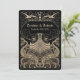 Convites náuticos do casamento do vintage na folha de ouro do falso. Intrincado, atraente, estilo do Velho Mundo. Voo de dois pássaros. Parte da coleção náutica do casamento do vintage maior.