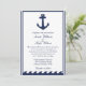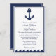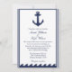 Convites náuticos do casamento dos azuis marinhos e do branco - o design dianteiro é compreendido de uma âncora, corda, e nas ondas de oceano inferiores. O design, o texto, e os esboços estão nos azuis marinhos com um fundo branco. Na parte traseira são uma âncora maior e uma beira branca sobre um fundo dos azuis marinhos. O papel é ajustado à revelia ao estoque básico do convite, mas podido ser mudado clicando "escolhe seu estilo" que usa então o de papel deixa cair para baixo a picareta uma da caixa das opções. Cada convite vem com um envelope branco. Para mudar a pia batismal, o tamanho de pia batismal, ou a cor da pia batismal, clicam o botão da personalização abaixo do convite náutico do casamento. Nota você pode ter que personalizá-la se determinado fraseio é demasiado longo e assim cabe o design melhor. Se o seu satisfeito com a instalação da pia batismal, você pode usar a característica do personalizamento para mudar a informação da demonstração a seus detalhes pessoais. Clicar as imagens pequenas da parte dianteira/traseiro do cartão com mudança a esse lado assim que a ele pode ser alterado. Quando feita a verificação a informação que você se aplicou está correta e isso você não tem nenhum erro de soletração em ambos os lados do cartão.
