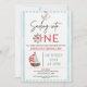 Leve Blue Sailboat navegando em um primeiro aniversario Convite Cute navegando no primeiro convite de aniversário de um bebê apresentando âncora, veleiro e leme em um quadro branco com uma borda azul listrada. Esta viagem para um convite de primeiro aniversário temático náutico é ideal para um veleiro ou para uma primeira festa de aniversário temática náutica.