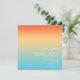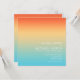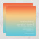 O pano de fundo de todas as peças deste casamento minimalista é um gradiente de cores que se chama de laranja tangerina, passando pelo amarelo-manteiga e a turquesa. O convite de casamento mostrado aqui apresenta um layout moderno e elegante e fonte de sans serif contemporânea para acrescentar ao seu apelo. Adicione facilmente os detalhes do evento usando o modelo fornecido. Procure ID741 para ver o conjunto completo de produtos correspondentes no Céu Tropical ou escolha uma das outras combinações de gradiente disponíveis para se adequar à paleta de cores do casamento.