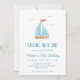 Celebre seu grande marco com um convite de primeiro aniversário de tema náutico que apresenta um belo veleiro. Correspondência de decoração no nosso compro