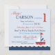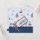 Doces cartões de aniversário de tema náutico com veleiros, caranguejos e âncoras para o primeiro aniversário. O efeito 3D gêmeo e etiqueta.