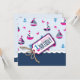 Cartão de aniversário náutico doce do tema com veleiros, caranguejos, e âncoras para o primeiro aniversário. guita e Tag do efeito 3D.