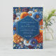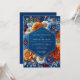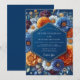 Embrace a bold and artistic aesthetic for your special day. This stunning design features a lush tapestry of painterly florals, including vibrant chrysanthemums and dahlias. The rich color palette combines deep navy blue with brilliant amber, fiery orange, and crisp white, creating a dramatic and sophisticated autumnal mood.